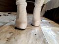 みくちゃん最新作は、カラーガード隊の先頭に立つ練習をしています。白いブーツに本格的な可愛い衣装。部屋で行進の練習をしていますが、足元には何か動く虫が。気にせずにただ行進をしていきますが時々バキッ、ミシッと音がしています。それでも気にせずに何度も往復をして、足元を見るともう原型をとどめていない物体が。ブーツで何度も何度も左右にツイストされたら中身がはじけ飛び、シートが茶色のシミだらけになっています。音楽に合わせて両足でリズムを刻み、その場で何度も足踏みしては潰れていくカブト。途中で気が付いたみくちゃんは「もう!行進の邪魔しないで!」そう言うと、いつものサディスティックなみくちゃんになり、おもちゃとして踏まれて遊ばれるのでした。