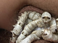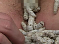 顔面を這い回る蚕が乳首へと降り淫臭を放つ膣へ。パンティの脇から進入し布の圧迫で潰れ体液を出し膣鏡で拡がる淫穴へ。何十匹もの虫が蠢き膣を濡らすと歯ブラシの柄が膣をかき回し、女は淫らな獣と化していく。アナルもクスコで広げられ無数の虫が放たれて…。前後の穴を虫に○され悶絶する女。肛門から蚕が顔を出したまま、虫にまみれたバナナがヴァギナを刺激し、更にズイキを激しく抽送され叫び声をあげながら腰を振って…。膣やアナルで潰れてもがく蚕。ドロドロとした体液が女性の膣を敏感にさせて狂ったようにヨガらせるのでしょうか?秘密兵器「膣内鏡」によって膣内で押し潰れた蚕やピストン運動でくぱぁと開いた粘膜の様子もバッチリ!文字通り虫唾が走る狂気のエロス。衝撃を受けながらも何故か興奮してしまう作品です。
