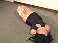 粘着テープで全身をぐるぐる巻きにしてしまうプレイです!!その上から黒いワンピースを着せて、頭には黒くて長いウィッグをかぶせてます。なんだか不思議な映像です。