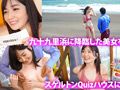 #22歳#女子大生#モデル系美女#夏休み#開放感#羞恥#立ち電マ#バイブ#3P。真夏のビーチに舞い降りた168センチのビキニ美女「りん」ちゃんを必殺土下座ナンパし、スケルトンクイズハウスにご招待!「経験人数?」「6人くらい?」「これしたいと言われたらなんでもしてあげる」と、クールビューティーに見えて、実はM寄りとカミングアウト。賞金100万円をかけたクイズ箱をいたるところに忍ばせ、応えられなければ即ハメ中出し。レッツチャレンジ!クイズ箱1つ目「男性器の名称は?」2つ目「女性器の名称は?」。かんたんなクイズにも「恥ずかしくて言えないですよ~」。お仕置き罰ゲームは、ブラ外し、1分乳揉み。さらに、面積極小マイクロビキニをかきわけ固定バイブがイン!ウィンウィンしながらエッチなクイズに答えられるか?答えられなきゃエッチな指令に絶対服○。バイブ突っ込んだまま。もうこんなに濡れたの?と問い詰めれば、「ごめんなさい…」とイキ潮!潮!潮!乳首も同時責めでぐしょぐしょ。もう、いじめてほしくてわざとクイズに答えないモードに(笑)「もうだめ、早く入れてぇ」と懇願されても挿れずに焦らせば、「あぁ、おかしくなるぅ~」(笑)(笑)(笑)。カチカチのデカチンをぐぅあっって奥まで挿れて羞恥で火照った美女をイキ狂わす。バック、駅弁、寝バック、ロールスロイス、3P。卑猥な言葉を連発しながらアクメイキ!